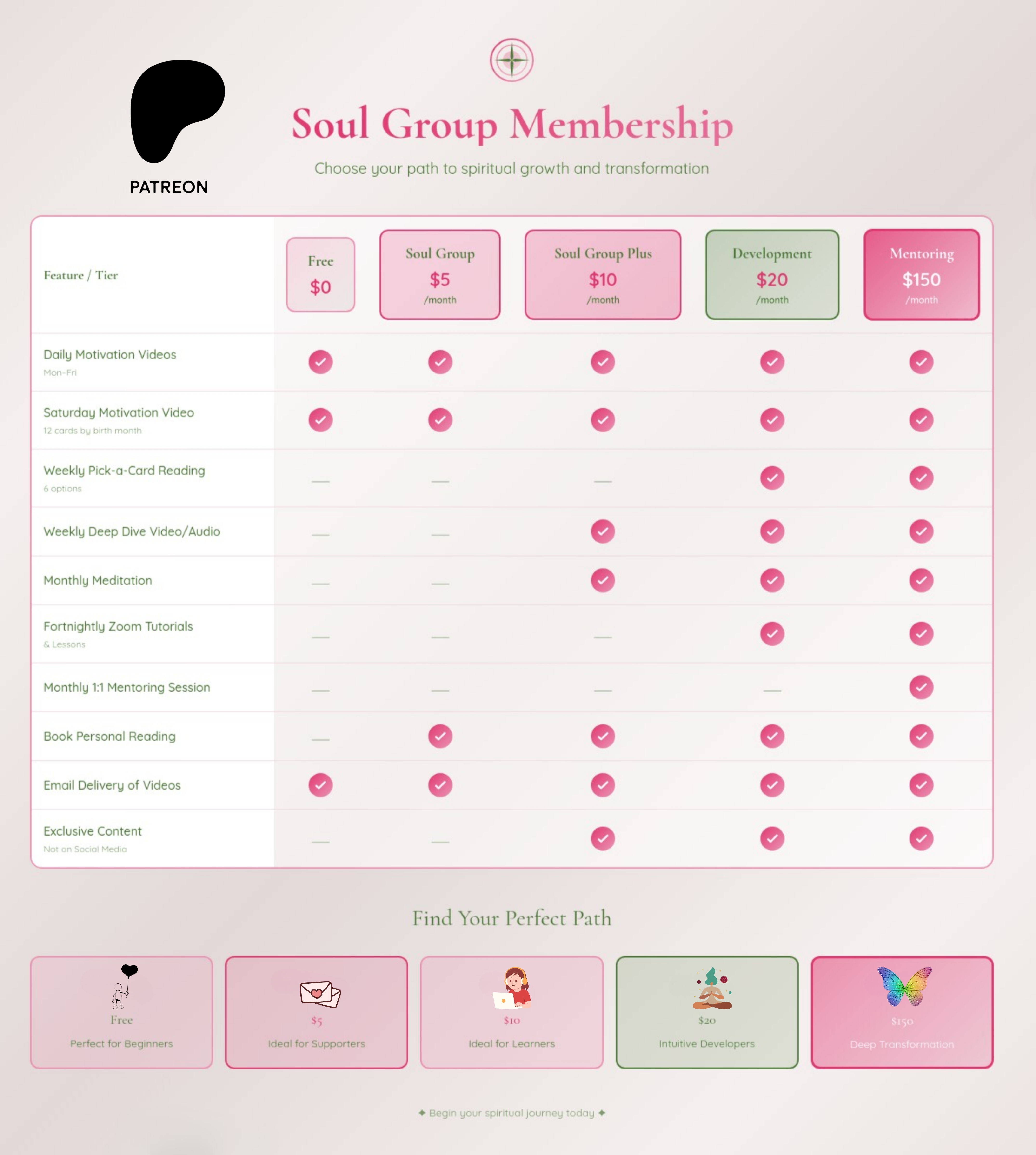 If you’d like the videos delivered directly to your inbox each day — along with access to extra content — you’re welcome to join the Soul Group Memberships on Patreon.